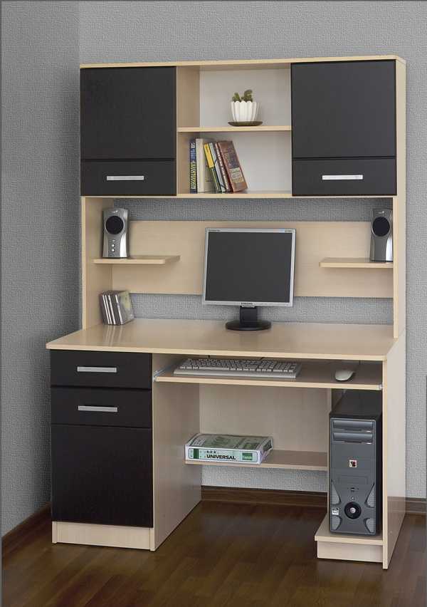 Компьютерный стол является необходимым мебельным гарнитуром, потому что он представляет собой не просто поверхность, где находится ноутбук, но и рабочую зону. Так, человек может держать на нем все необходимые вещицы и предметы, которыми пользуется в рабочем процессе: канцелярия, ксерокс, факс, телефон, другие элементы.