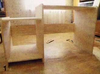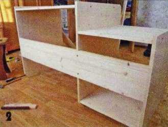 Прикручиваем малую боковину к полке, затем к задней панельке. После этого присоединяем полку к большой боковой стенке.