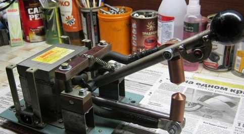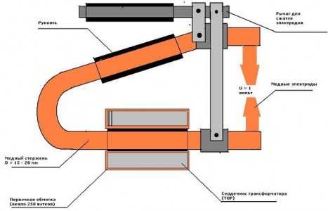 С целью увеличения прижима электродов, кроме рычага применяется рычажно-винтовой зажим. Он представляет собой винтовую стяжку, расположенную между рычагом и основанием. Можно применить и другие способы сжатия, но они потребуют специального оборудования. Выключатель устанавливается в цепь первичной обмотки. Вторичную обмотку нельзя использовать для этих целей, поскольку в ней слишком большой ток, образующий дополнительное сопротивление.