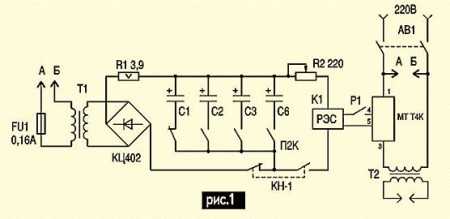 Функционирование подобного конденсаторного источника осуществляется по следующему принципу. Когда основная цепь отключается, конденсаторы С8-С9 заряжаются от цепи трансформатора «Ток». В момент, когда система запускается, происходит их разрядка на вторичную обмотку выходного трансформатора Тр3. За контроль продолжительности импульса отвечают цепи Ru1-Ru2 R34 и C10. После того как цепь выключается – процесс повторяется.