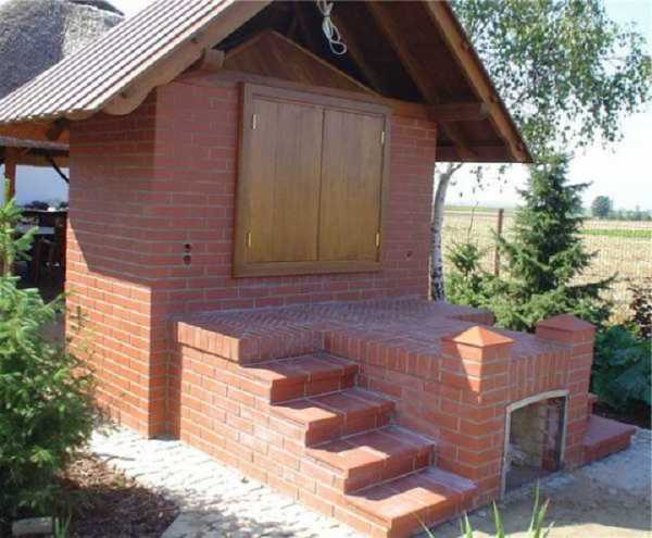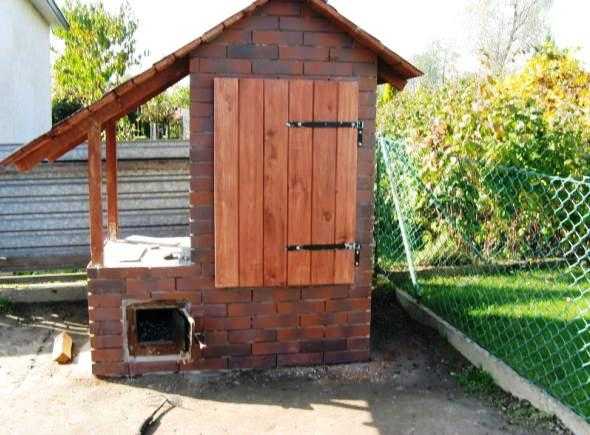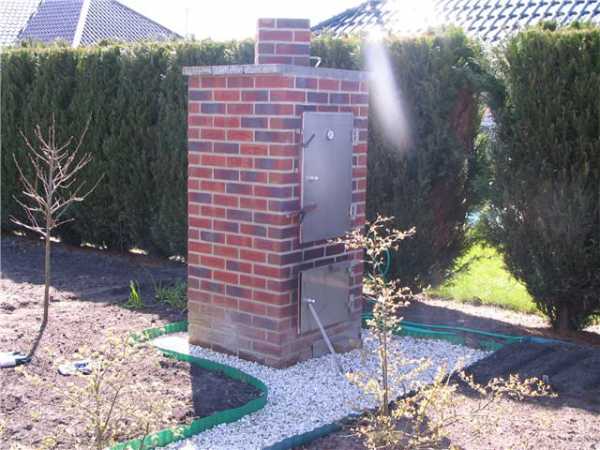 Коптильня из кирпича своими руками имеет очень солидный внешний вид. Кроме того основной строительный материал помогает удерживать стабильную температуру приготовления.