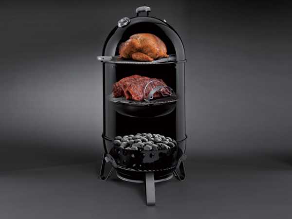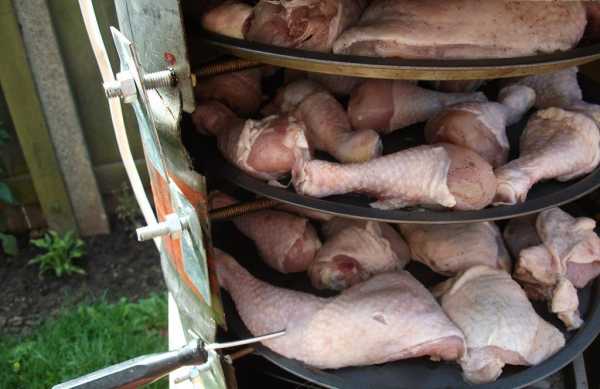 Примечание: На нее поставьте поддон или сковороду из стали, наполненный опилками, так как жир, капая в стружку, испортит аромат еды.