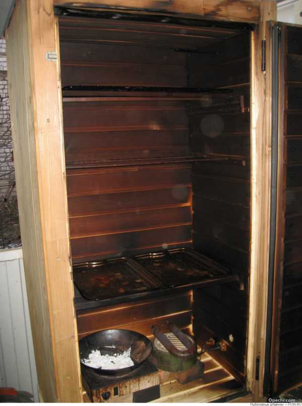 Также с успехом используется коптильня холодного копчения своими руками, сделанная из корпуса холодильника. Из него необходимо изъять морозильную камеру и компрессор. Решетки можно использовать как подставку для деликатесов. По бокам нужно сделать отверстия для противней.