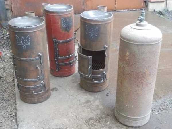 - бочка 200 л – при подключении дымохода снизу устанавливается на треногу, при вводе сбоку может покоиться на земле