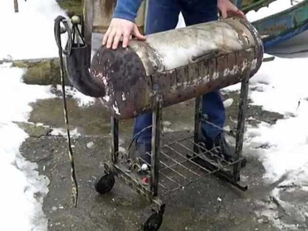 Для переносного устройства требуется бочка и печка, которой может служить любой мангал. Сырое мясо и рыба крепятся и подвешиваются на крючке внутри бочки. Бочки бывают разных диаметров и если она выполнена из легкого металла, то можно брать ее с собой на отдых или рыбалку и наслаждаться копчёностями среди природы. Если обратить внимание на фото коптилен своими руками, то можно заметить что большинство любительских сооружений выполнено именно таким способом.