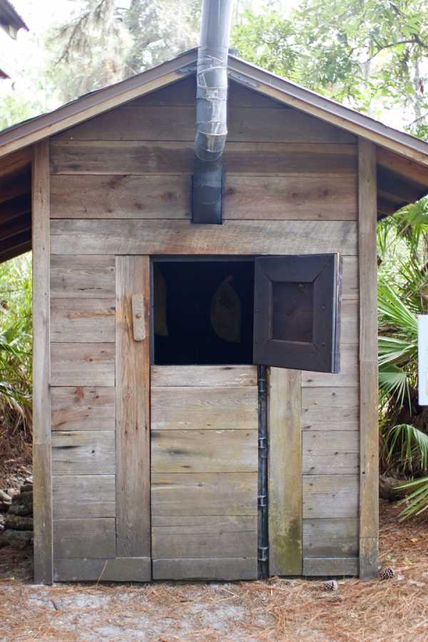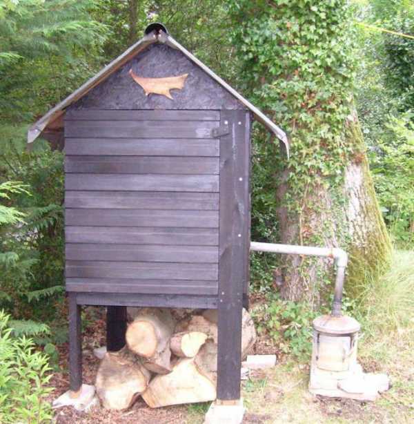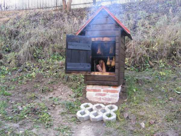 Саму коптильню следует устанавливать на возвышенности для того чтобы под наклоном проложить трубу, которая будет служить дымоходом. На старых полочках очень удобно размещать продукты и их не требуется подвешивать. Таким способом можно приготовить деликатесы горячего и холодного копчения.