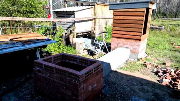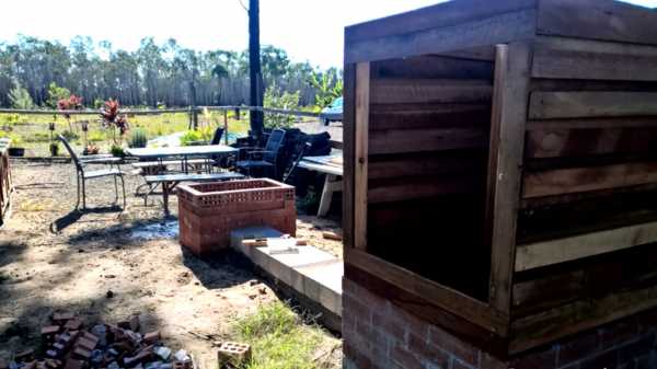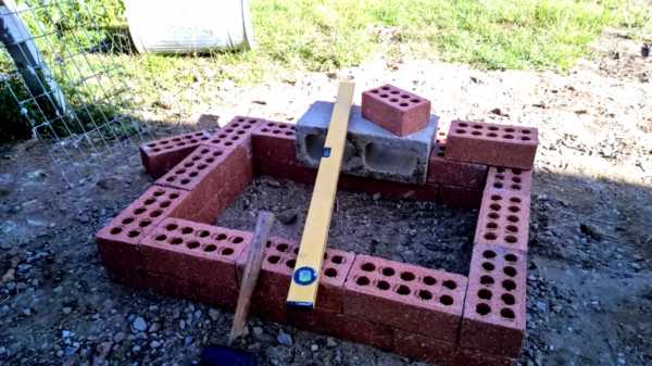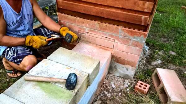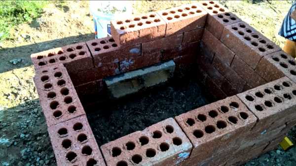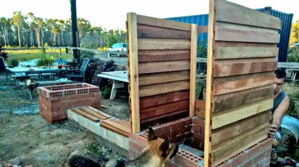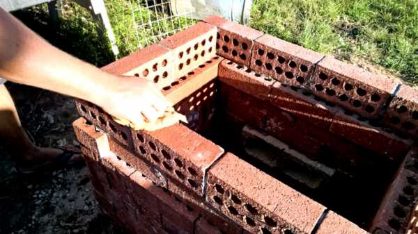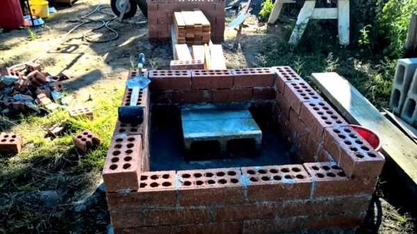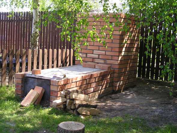 - под деревянный шкаф этим же кирпичом выкладывается колодец, являющийся одновременно основанием, дымоходной трубой