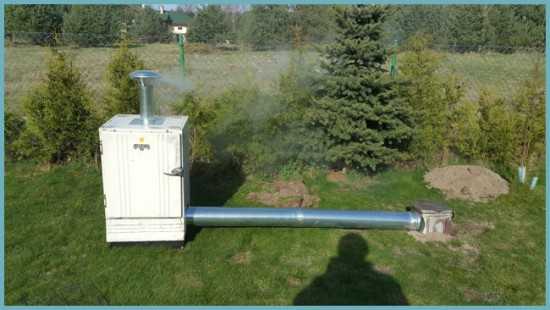 - дымоход – труба укладывается в земле либо проходит по воздуху