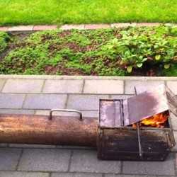 В качестве очага может использоваться стационарная печь из листового металла, куска заглушенной трубы большого диаметра. Конструкция должна обеспечивать периодическую очистку дымохода от сажи. Поэтому, не рекомендуется использовать неразъемное соединение трубы с камерой, печью.