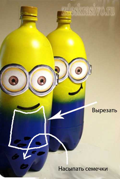 Бантик из пальмовой бечевки рафииА из таких бутылок тоже получились бы забавные кормушки.