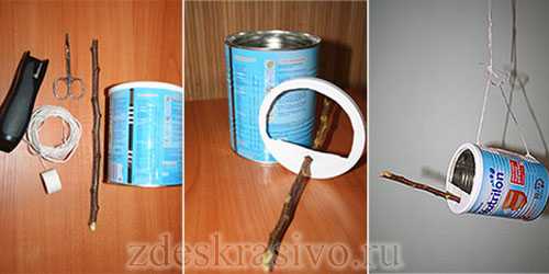 Чтобы птицы не порезались, сглаживайте посадочный край кормушки.Банки из-под детских смесей — очень удобные для птичек.