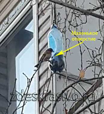 - Отверстие кормушки должно быть широким — птички боятся замкнутого пространства.