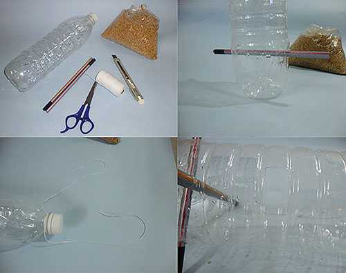Можно взять подручные средства, которыми могут быть даже бутылки из пластика или коробки.