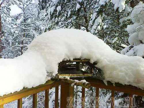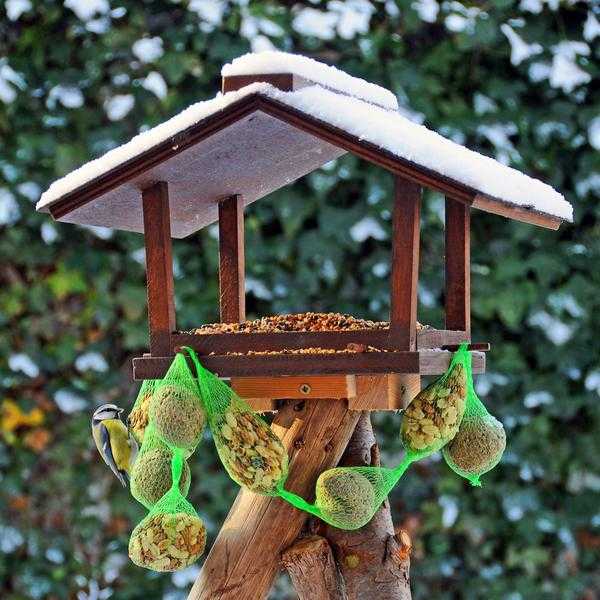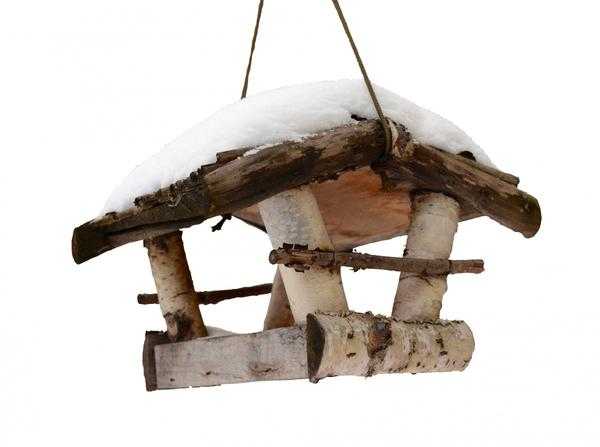 - Кормушка должна быть с крышей, так как дождь может намочить корм либо засыпать его снегом.