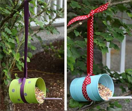 Как сделать кормушки из банок от кофе смотрите на видео.