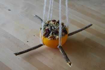 - Привяжите к ветке дерева кормушку с помощью второго шнурка.