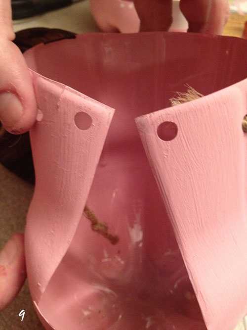 Дырокол делает дырочки аккуратнее, чем гвоздь5.Симметричные отверстия надо сделать и в верхней части бутылки, в эти отверстия будет продеваться шпагат, с помощью которого будут соединяться верхняя и нижняя части бутылки и подвешиваться эта красота.