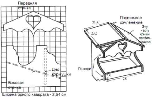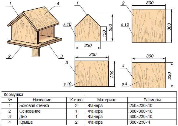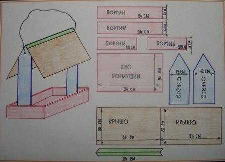 Усложняется процесс применением специального инструмента для вырезания из фанеры необходимых деталей, подготовительными работами по изготовлению чертежа и заблаговременным продумыванием всех составляющих частей птичьей кормушки.