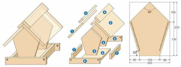 Представляем вашему вниманию несколько вариантов чертежей изготовления кормушки для птиц из дерева. Можно создать обычную кормушку-столовую, маленький замок или просто домик для птиц. А если Вы мастер на все руки, то кормушку можно украсить резьбой по дереву, создав красивые узоры.