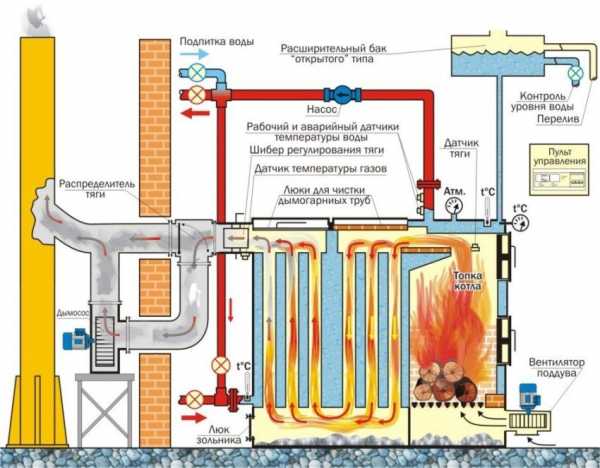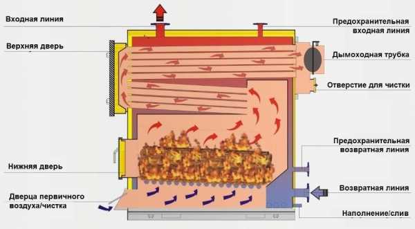 Схематическое изображение устройства котла, работающего на твердом топливе
