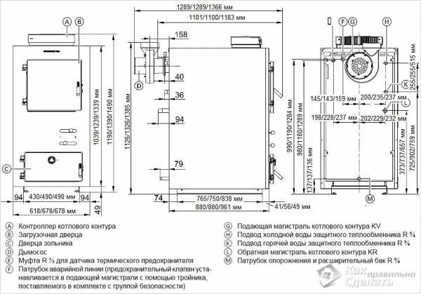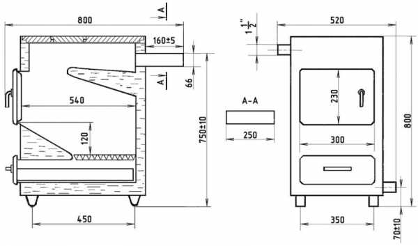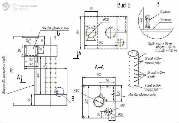 Чертеж с размерами для создания твердотопливного котла своими руками