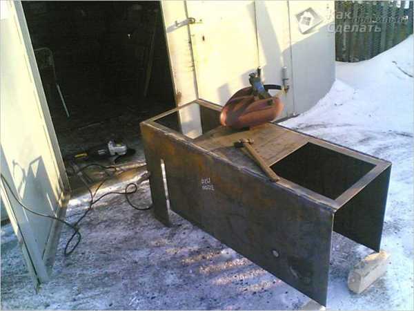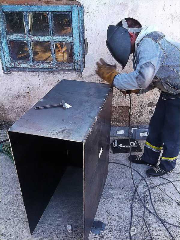 - К вырезанному куску приварите четыре полосы металла, чтоб получить своеобразную коробку без крышки.