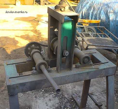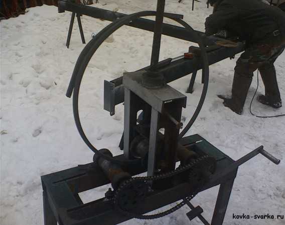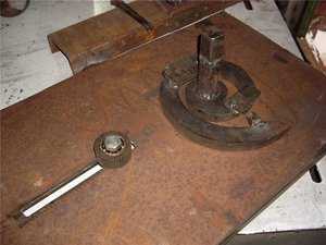 На фото станок, которым мы выгибал ровные круглые детали из металлического прутка. Когда делали кованый столик, к примеру.