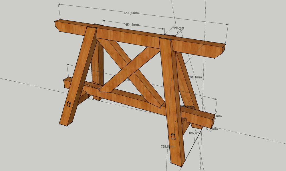 Осталось только определиться с линейными размерами конструкции. А основной размер — это высота ножек. Опытным путем было установлено, что оптимальной высотой собранной конструкции станет рост мастера, который буде выполнять работы, минус 10-12 см. Количество распорок для жесткости тоже может быть произвольным, как и сечение бруса, из которого будет выполнена рама.