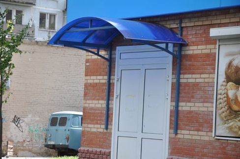 Данный тип козырьков пользуется огромной популярностью, а листы поликарбоната позволяют создавать самые необычные формы и дают возможность воплотить в реальность даже самые смелые и необычные идеи.