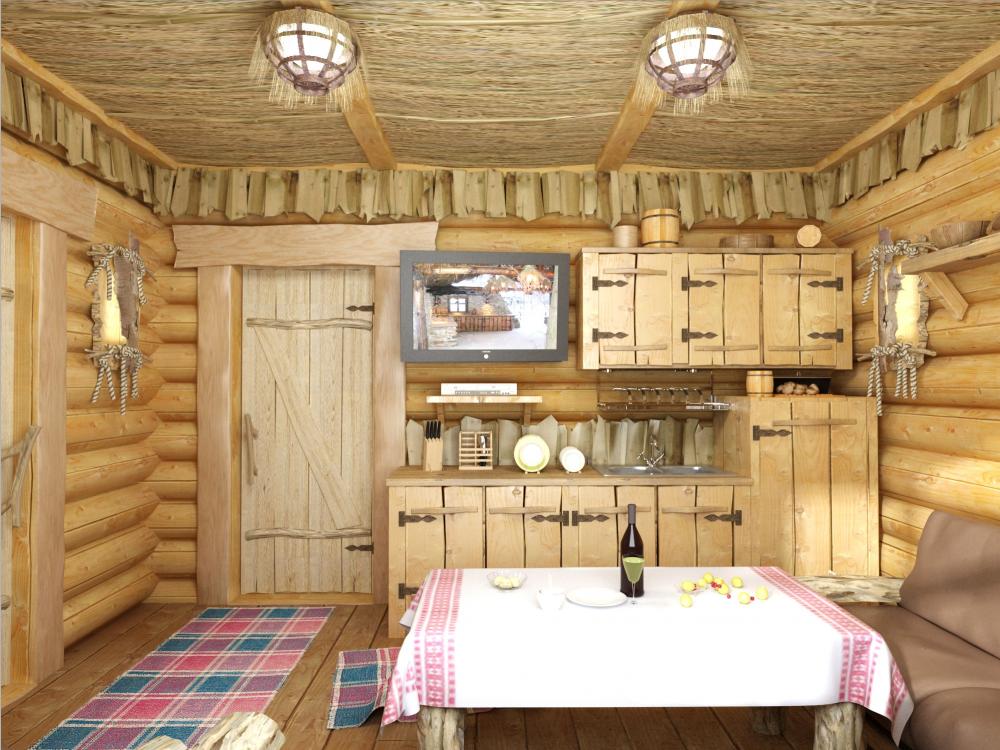 1. Кухня на даче в деревянном доме