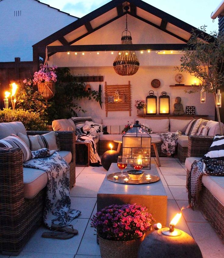 Повесьте несколько гирлянд в зоне отдыха для дополнительного стиля.