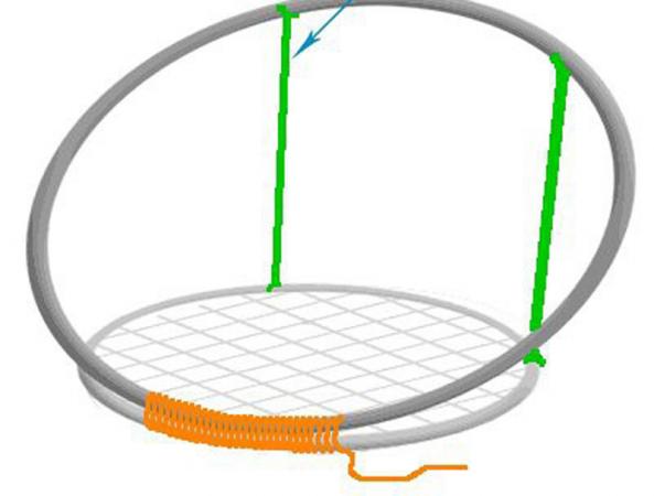 Нити спинки следует скрепить узлами с сиденьем. После этого нужно соединить два обруча напротив спинки по схеме.