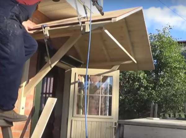 Козырёк над крыльцом тоже можно сделать своими руками. Помните — навес/козырёк является обязательным элементом – это защита от дождя и снега.