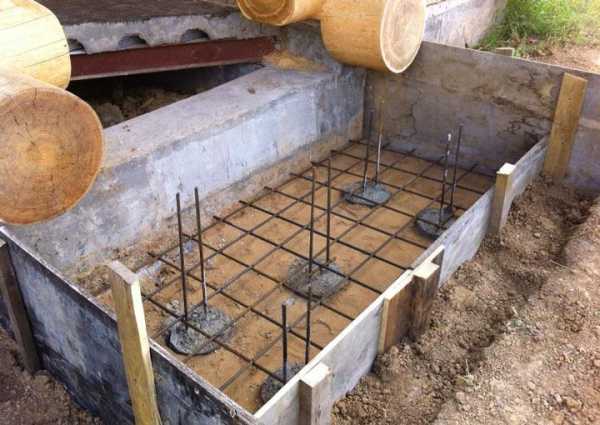 Для этого по периметру предполагаемой постройки выкапывается траншея глубиной 0,6 м, ставится опалубка и потом в неё заливается бетонный раствор. После того как он крепко встал, опалубка снимается и можно приступать к монтажу деревянных конструкций согласно составленному проекту.