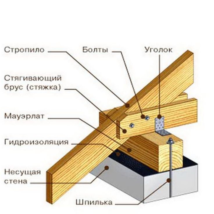 Тип крепления «шип-паз» должен обеспечивать максимальную жесткость. Обычно в качестве страховки к стропилам приделываются еще и накладки или же металлические уголки. Это помогает получить наиболее надежное соединение, защищенное от возможных деформаций древесины.