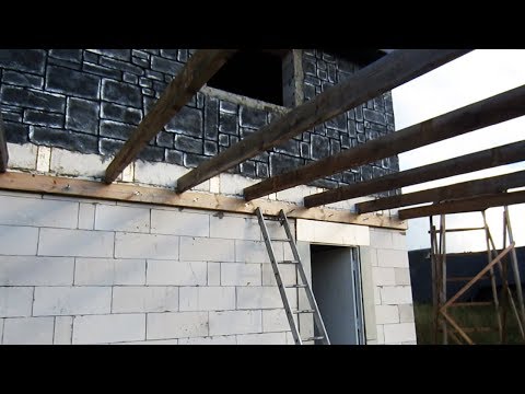 На нее будут укладываться стропильные ноги, так что фиксация должна быть надежной. - Вторую балку мауэрлата монтируют либо на несущую стену будущей пристройки, либо на опорные столбики. Их высота должна быть ниже основной несущей стены дома, чтобы обеспечить необходимый уклон крыши. На столбиках балка крепится шпильками, а на несущей стене – анкерными болтами.