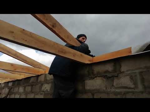 Второй вариант — построить каркас крыши на земле , чтобы сформировать отдельные фермы крыши. Ферма крыши представляет собой сборную часть каркаса крыши, состоящую из пары угловых стропил и одного горизонтального нижнего пояса, который образует потолочную балку. После сборки фермы поднимаются и крепятся к вершинам стен. Строительство и установка ферм быстрее и проще, чем сборка каркаса по частям, но вам понадобится помощь, чтобы поднять фермы на место.