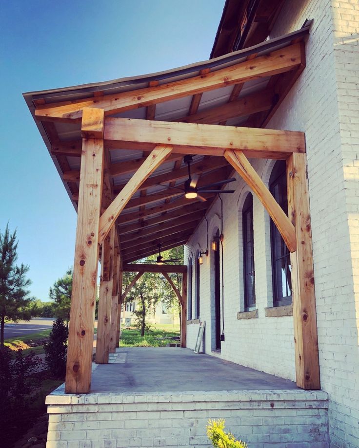 Горячеоцинкованные, стойкие к коррозии металлические кронштейны, называемые седловыми опорами, устанавливаются в верхней части этих опор, когда бетон еще влажный, образуя анкер для стоек 6×6 или 8×8, которые будут поддерживать крышу.