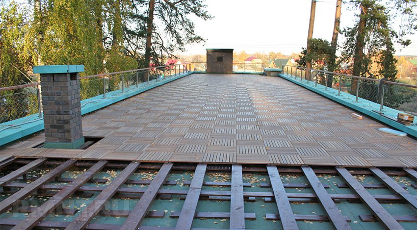 От целевого назначения зависит тип перекрытия: очевидно, что при высоких ожидаемых нагрузках основанием должна быть бетонная плита. Но это не значит, что вся постройка должна быть кирпичной или бетонной. Например, плоская крыша в деревянном доме тоже может быть эксплуатируемой. Конечно, в качестве вертолетной площадки ее использовать нельзя, но устроить солярий, разбить сад или поставить беседку для чаепития – вполне. Разумеется, разреженную обрешетку делать нельзя, только сплошную.