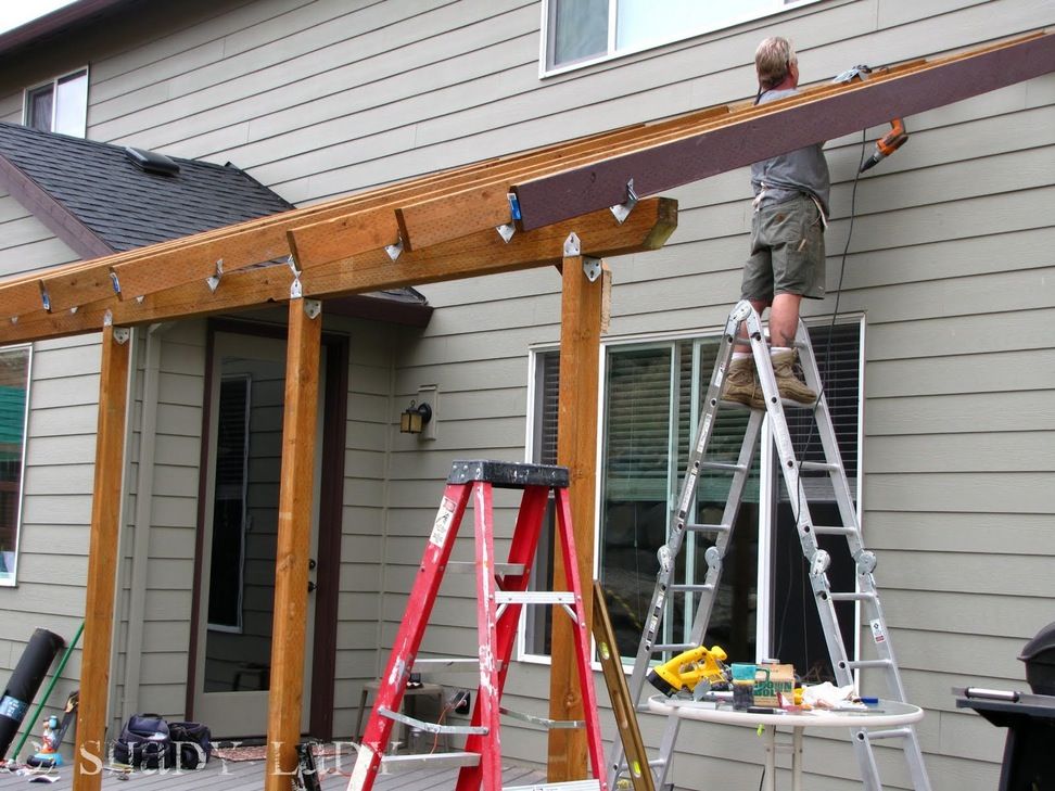 Стропила и подвесы балок идут рука об руку. Подготовьте подвесы для балок, прикрепив их к дому, и получите стропила любого цвета, подходящего для вашего дизайна. Затем закрепите стропила и используйте подвесы для балок, чтобы создать прочную конструкцию. Вы также можете использовать сейсмические анкеры, но подвески для балок проще в установке, и они рекомендуются для крыш патио. Наиболее распространены стропила 2х6.