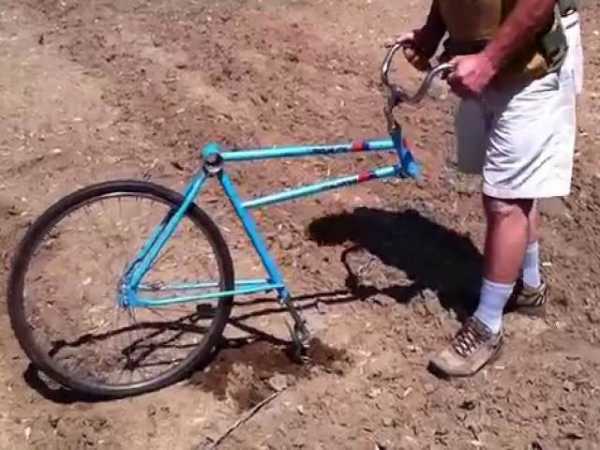 Для другого варианта культиватора, который можно создать своими руками, нужны части велосипеда. Так что, если у вас есть старый и ненужный велосипед – сделайте свой культиватор и не тратьте деньги на покупку. Это идеальный помощник на даче.