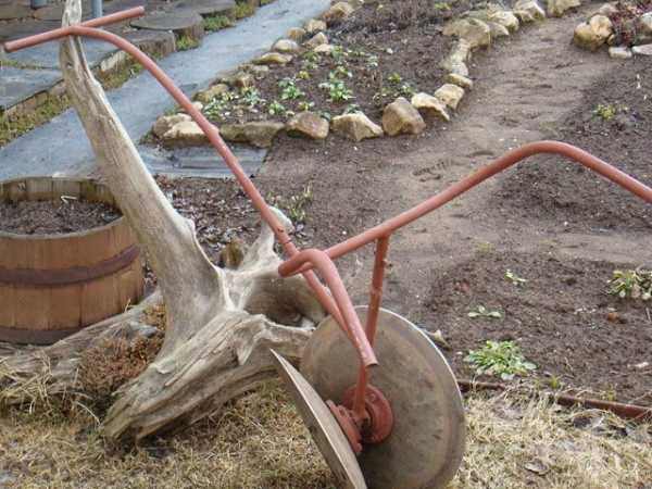 - После того как основа готова, к ней крепится колесо, оно должно быть не слишком большим, чтобы плуг хорошо входил в землю. И не слишком маленьким, тогда вам придется прилагать больше усилий при толкании, чем это требуется с колесом средних размеров.