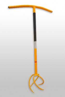 Делается он самостоятельно просто, из обычных вил. Предварительно купите в хозмаге насадку из пластика для черенка лопаты в виде рукоятки – их применяют и на вилах, и на лопатах для удобства работы. Так как рукоятка у оригинального «Торнадо» — это длинная горизонтальная трубка, то нашу рукоятка тоже нужно доработать.