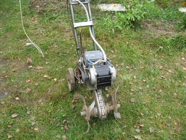 По тому же принципу можно также взять для самодельного мотокультиватора двигатель от стиральной машины. Разберите детский велосипед и приспособьте на ваш агрегат звездочки и велосипедную цепь. В итоге получится такой себе самодельный электрокультиватор. Правда, если вы решили сделать этот агрегат своими руками, учтите, что провод будет постоянно путаться под ногами и мешать. Из-за того, что питание механизма зависит от сети и кабеля — не уйдешь дальше, чем позволит его длина.