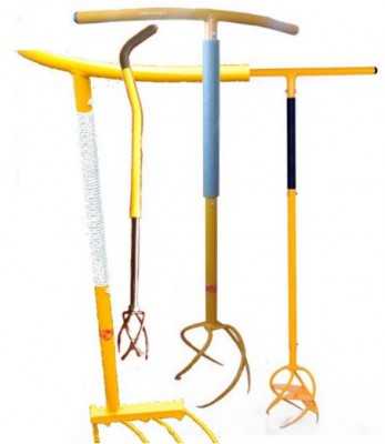 - Ручки делают из металлических труб, с такими ручками очень удобно обрабатывать почву.