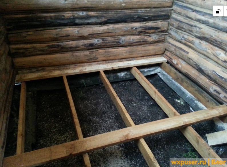 Протекающий пол в бане и крепление лаг для проливных полов