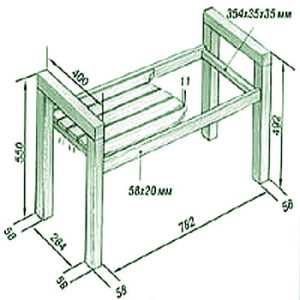Вот пример схемы еще одной более сложной скамейки, которую можно использовать для бани:
