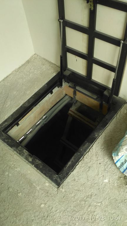 Электропривод актуален, когда люк слишком тяжел для поднятия жильцами дома, или когда он наоборот слишком легкий и в подвал могут проникнуть дети. Механика позволяет одновременно облегчить процесс поднятия дверки и предотвратить несанкционированное проникновение в подпол.