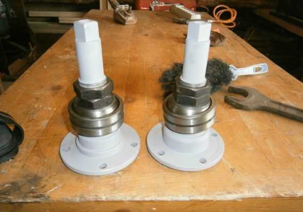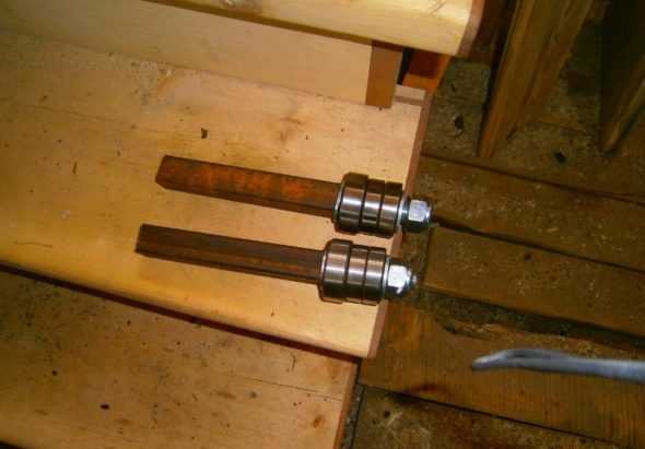 В качестве роликовых деталей можно использовать либо компоненты, выточенные на токарном станке, либо обычные шарикоподшипниковые модели. Если работа идет по первому варианту, то в подшипнике обязательно должны быть отверстия под установку узла вращения, а также они должны пройти закалку. Если же используется второй вариант, то необходимо иметь один элемент большего размера и еще два подшипника меньшего размера, но одинаковых между собой. Естественно, необходимо помнить, что внутренний диаметр подшипников должен быть одинаковым. Вал должен быть выточен с упорным бортиком с одной стороны, а также с резьбой для крепления роликов с другой.
