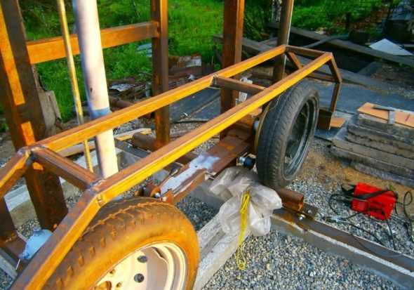 - Заключительным этапом изготовления является сооружение рамы-каркаса, обычно для этого применяют швеллер.